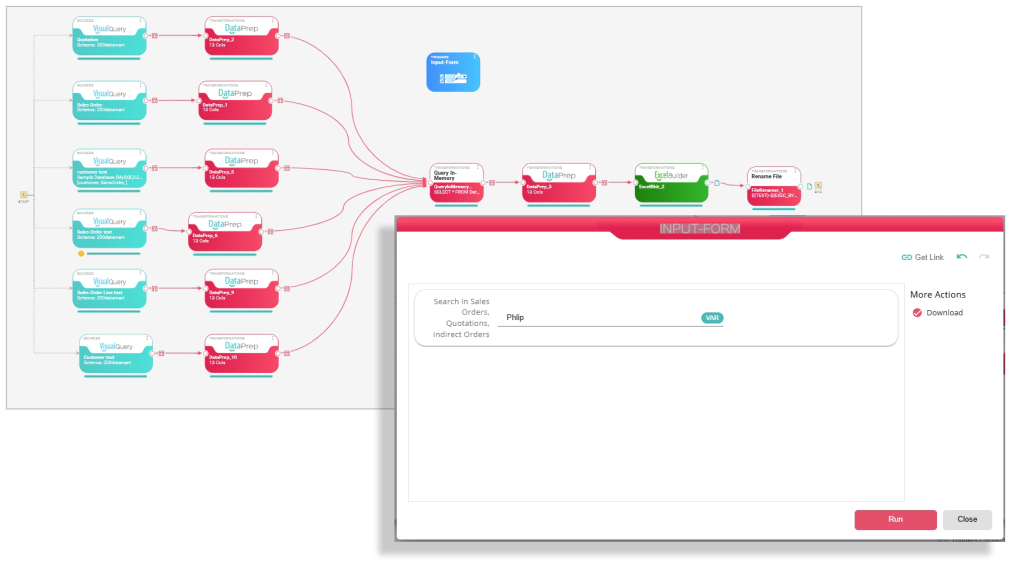 Working with data doesn’t stop at retrieving it—you often need to shape it after retrieval. In B2Win Suite, the DataPrep node provides a graphical way to prepare and manipulate data, making it easy to quickly structure and refine datasets visually without writing code.